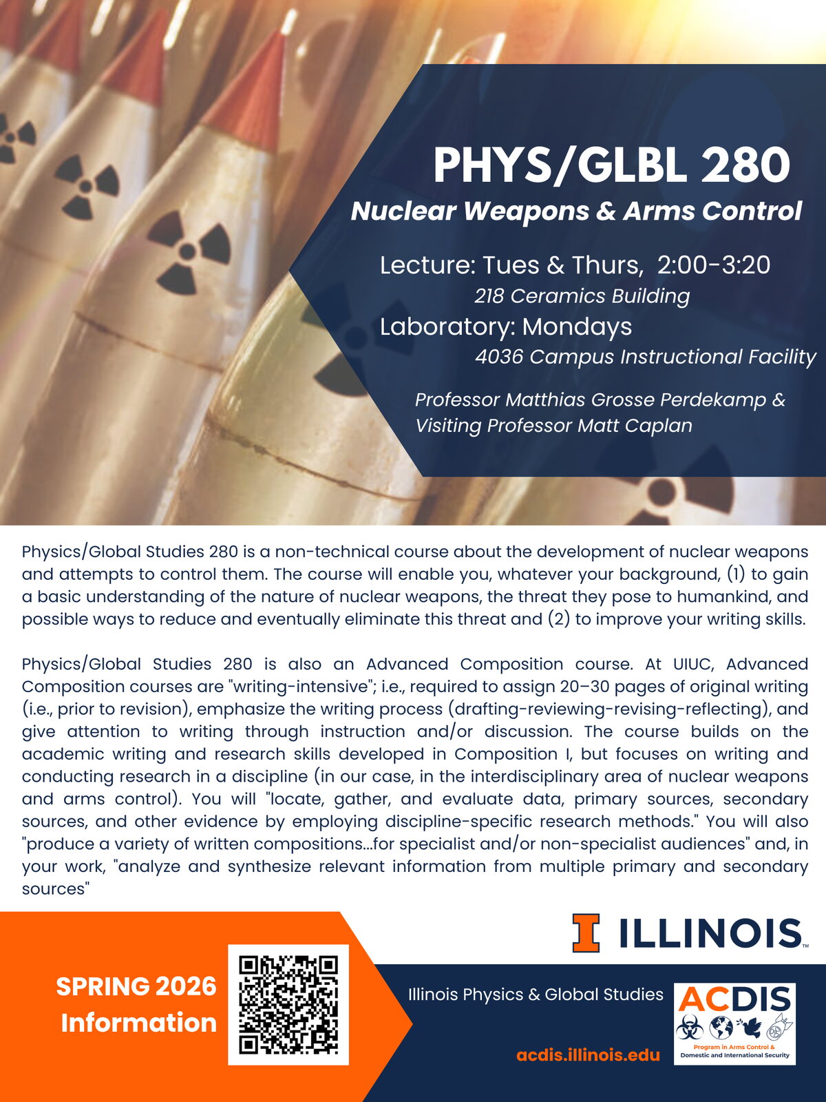 We are looking for graduate and undergraduate students to serve as Teaching Assistants for Physics/Global Studies 280: Nuclear Weapons, Nuclear War, and Arms Control for the Spring 2026 Semester!